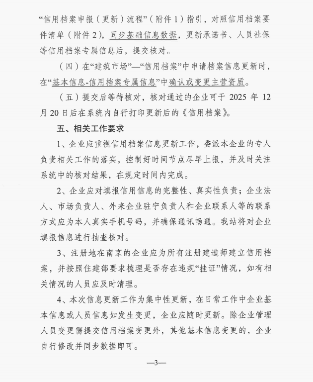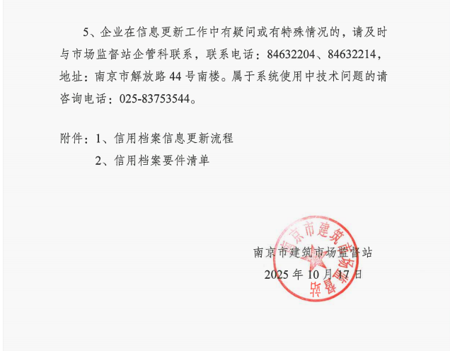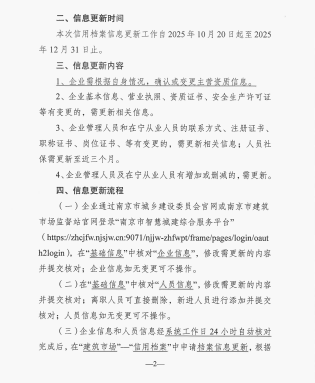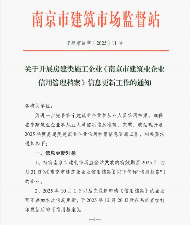 关于开展房建类施工企业《南京市建筑业企业信用管理档案》信息更新工作的通知